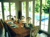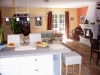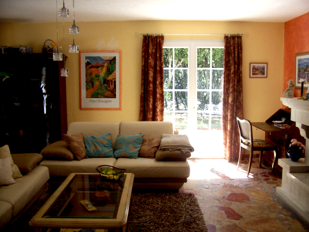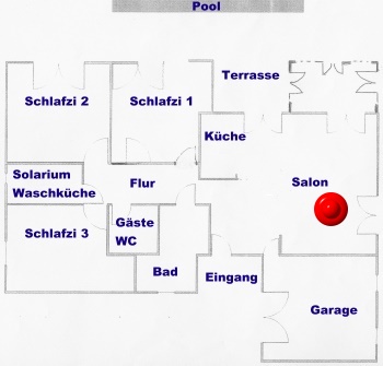Der Salon ist mit einer gemütlichen Sitzecke und einer Essecke ausgestattet und wird Ihnen mit seinem offenen Kamin bestimmt lange Zeit in Erinnerung bleiben. Wird es mal kühl, so machen Sie mit dem Holzvorrat hinter der Villa ein Feuer im offenen Kamin, wobei sich damit ganz nebenbei der Warmwasservorrat erneuert und auch die Zimmerheizkörper volle Leistung abgeben können.